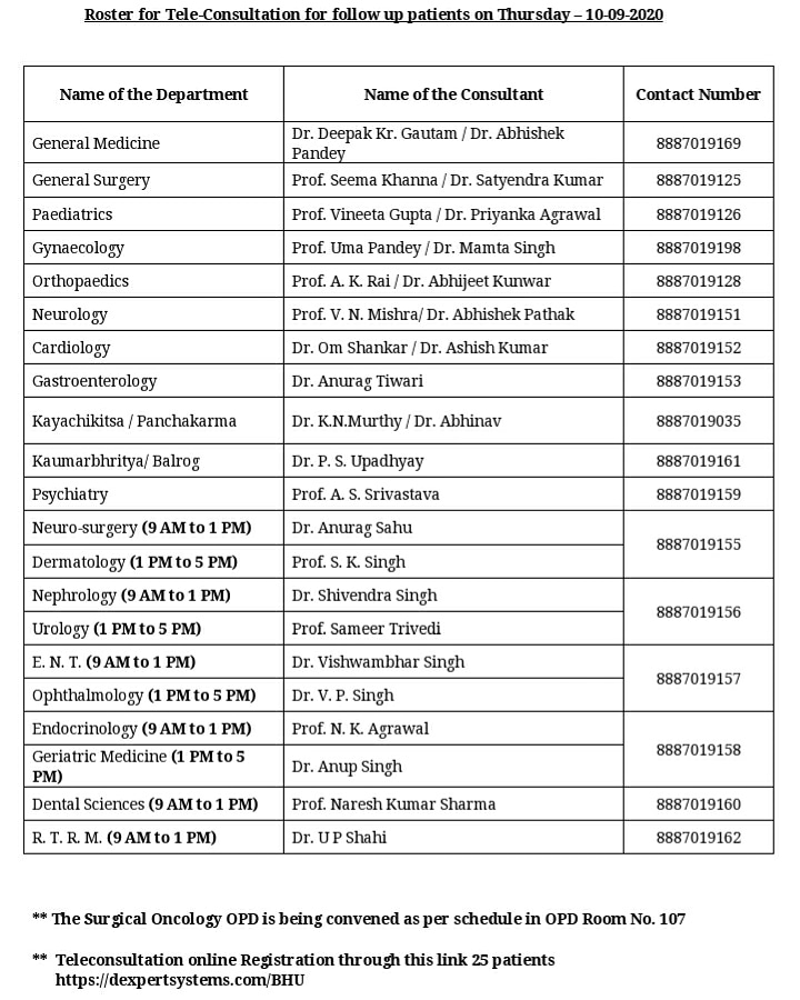 Bhu Official On Twitter Here S The List Of Doctors Who Will Be Available For Teleconsultation From 9am To 5 Pm At Telemedicine Opd Sir Sunderlal Hospital Bhu On Monday 14 09 2020 Contact Numbers - Check doctors list, appointment schedule, contact number, address and patients reviews.