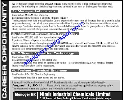 Nimir Chemicals Jobs : Mentioned in image below job location: Nimir Chemicals Jobs - #1 site for chemical engineering freshers jobs.